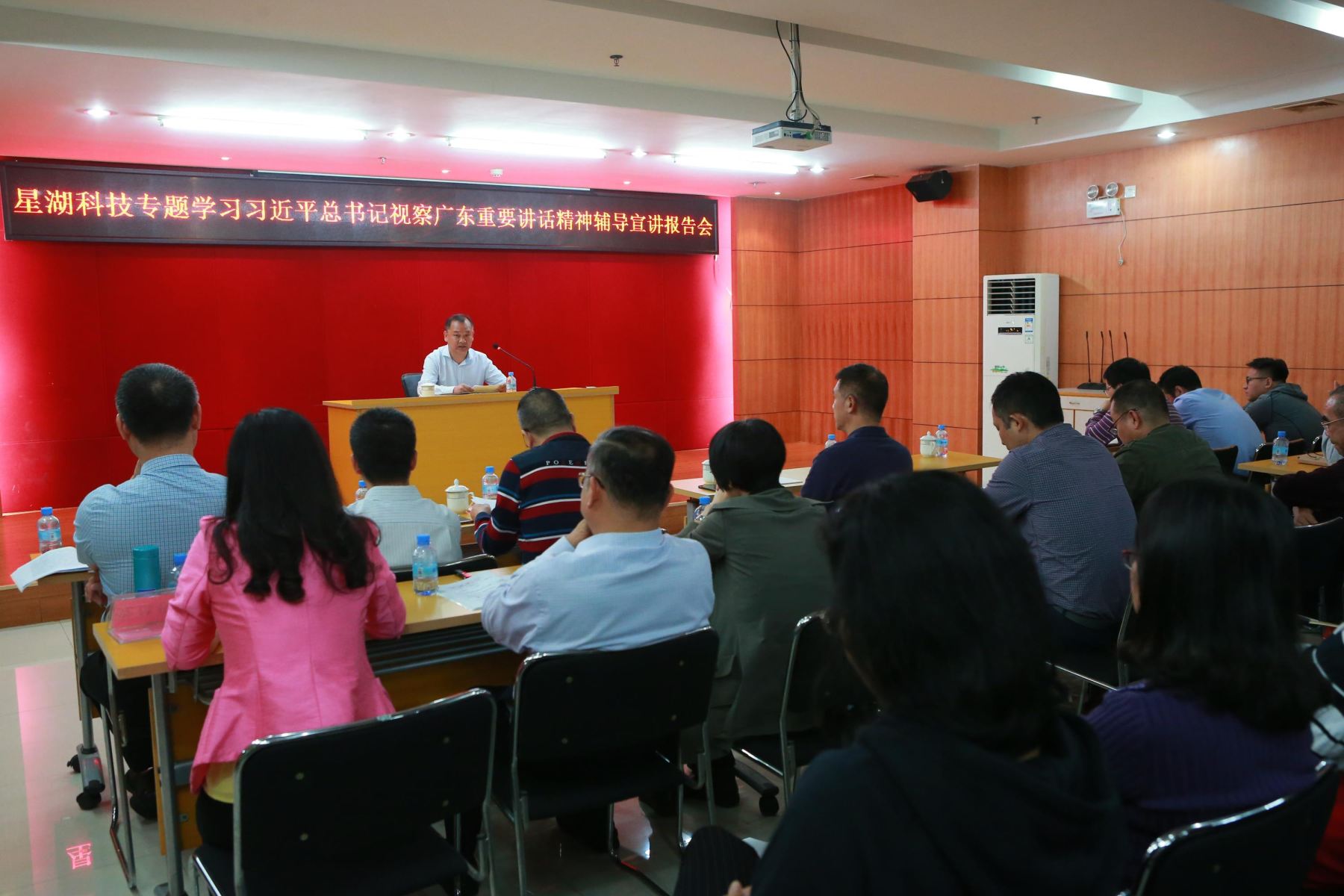 12月5日下午,公司黨委舉辦專題學(xué)習(xí)習(xí)近平同志視察廣東重要講話精神輔導(dǎo)宣講報(bào)告會(huì)。邀請(qǐng)中共肇慶市委講師團(tuán)教研室主任劉紅星作專題輔導(dǎo),公司黨委書(shū)記陳武對(duì)深入推進(jìn)學(xué)習(xí)宣傳工作再動(dòng)員再部署。公司班子成員、總助及部長(zhǎng)助理以上管理人員、黨支部書(shū)記、黨員共140多人參加了宣講報(bào)告會(huì)。