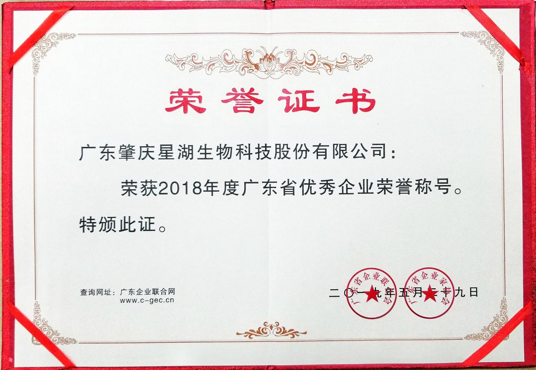 星湖科技榮獲“2018年度廣東省優(yōu)秀企業(yè)”榮譽(yù)稱號(hào)