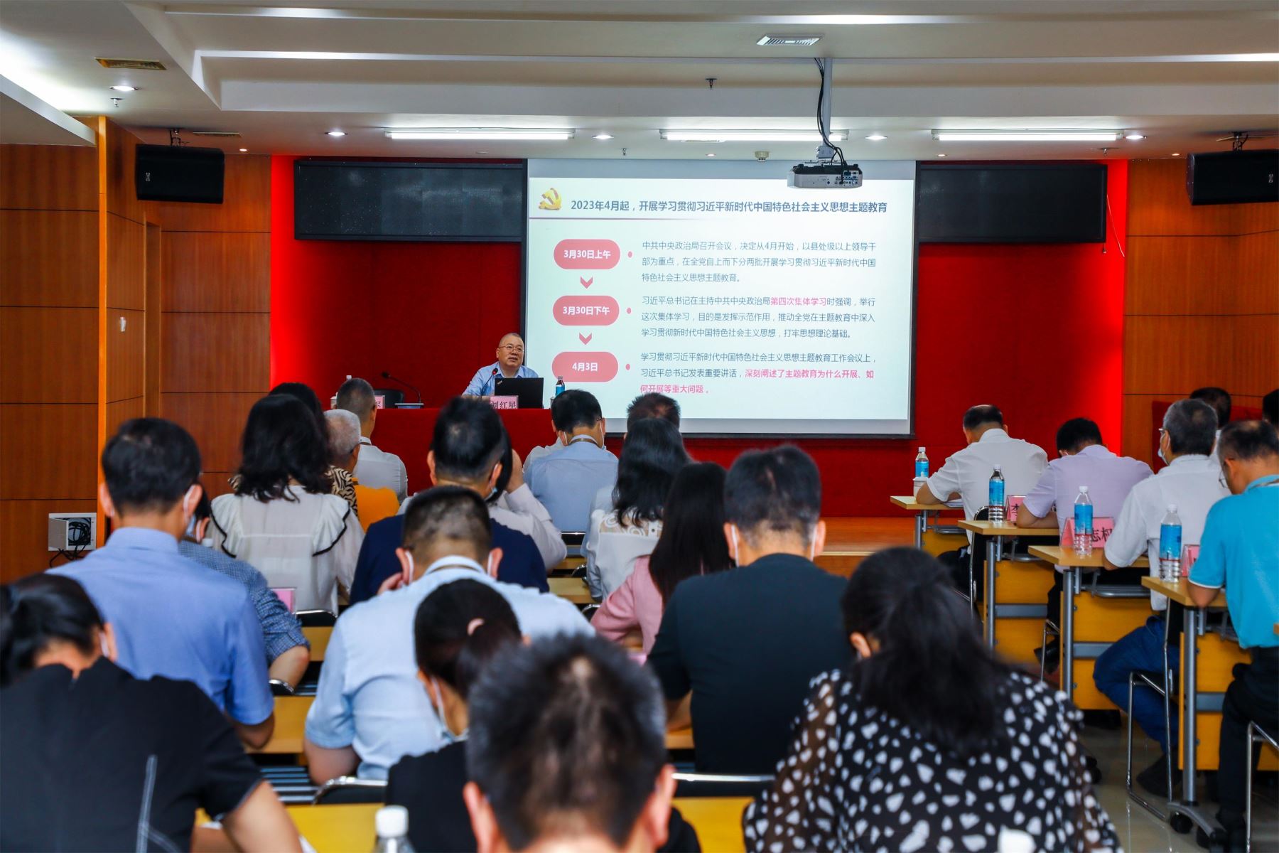 開班儀式上,肇慶市委講師團教研室主任劉紅星圍繞學習貫徹習近平新時代中國特色社會主義思想題主題教育和習近平總書記視察廣東重要講話精神,作了題為《領(lǐng)悟思想偉力 凝聚奮進前列磅礴力量》專題輔導報告,從主題教育的時代背景、目的意義、內(nèi)容要求為切入點,對開展主題教育的總要求作出深刻闡釋,就開展主題教育如何做好理論學習、調(diào)查研究、實踐運用、成果轉(zhuǎn)化等作了系統(tǒng)深入的輔導,深化了我們對習近平總書記視察廣東重要講話重要指示精神,對習近平新時代中國特色社會主義思想的感悟和理解,對我們深入開展學習貫徹習近平新時代中國特色社會主義思想主題教育有很好的指導作用。