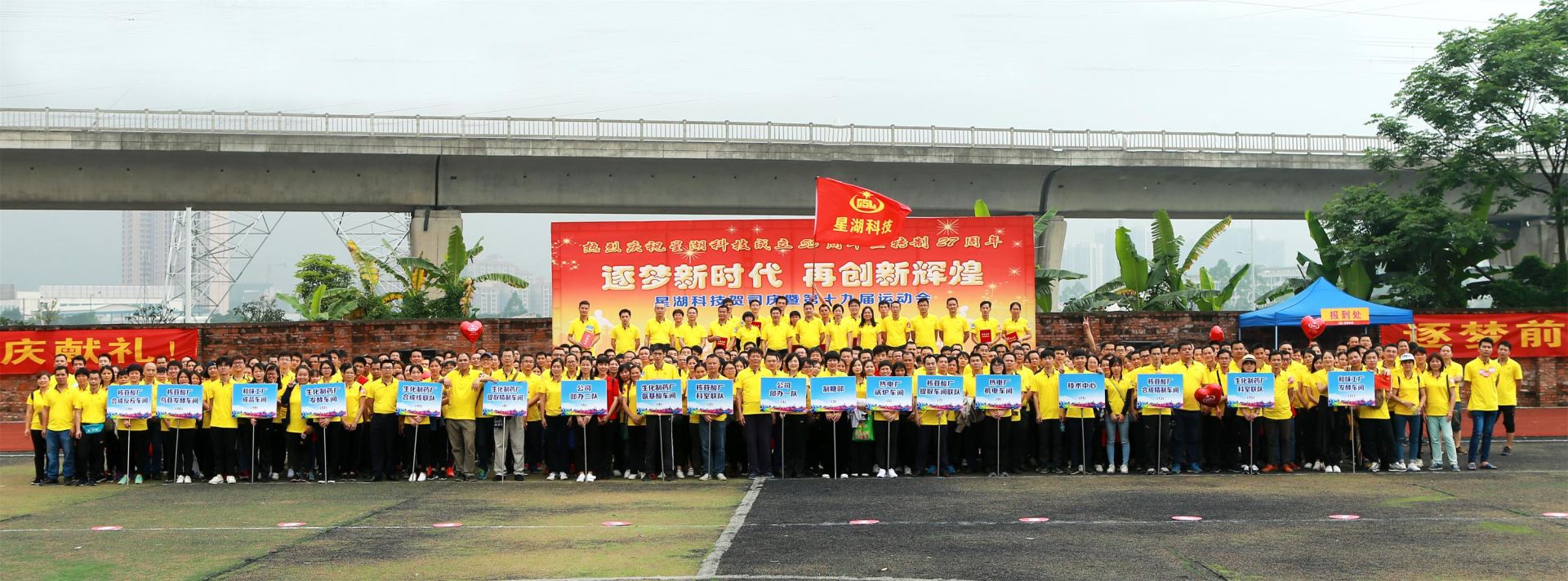 星湖科技隆重舉行賀司慶暨第十九屆運(yùn)動(dòng)會(huì) 今年4月18日是星湖科技成立55周年暨轉(zhuǎn)制27周年的大喜日子,公司在生物工程基地運(yùn)動(dòng)場(chǎng)隆重舉行了以“逐夢(mèng)新時(shí)代?再創(chuàng)新輝煌”為主題的賀司慶暨第十九屆運(yùn)動(dòng)會(huì)。公司黨委副書記、工會(huì)主席葉志超,副總經(jīng)理黃勵(lì)堅(jiān)、張番平,財(cái)務(wù)總監(jiān)朱華等在家的公司領(lǐng)導(dǎo)參加了活動(dòng),與各級(jí)管理人員和廣大員工同賀司慶,以一場(chǎng)“文明、熱烈、精彩、圓滿”的體育盛會(huì),為公司生日獻(xiàn)上最美好的祝福,祝愿公司前程似錦,大展宏圖,逐夢(mèng)新時(shí)代,再創(chuàng)新輝煌!激勵(lì)員工爭(zhēng)創(chuàng)優(yōu)異成績(jī),迎接新中國成立70周年!